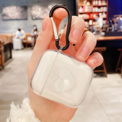 包邮 闪粉立体透明爱心适用苹果耳机壳airpodspro耳机套2/3/5/4代ins立