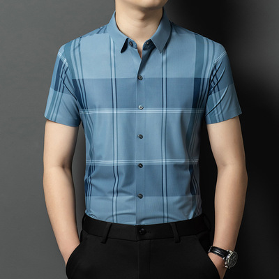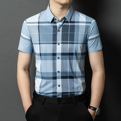包邮 新品中年夏季衬衣男士雅戈尓2024男装休闲翻领开衫短袖格子衬衫潮