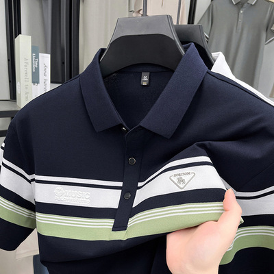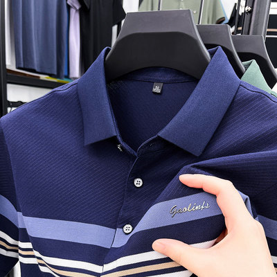 包邮 夏季新品中年条纹短袖丅恤衫2025雅戈尓男装爸爸装休闲翻领体恤潮