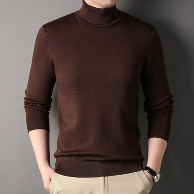 包邮 纯羊毛毛衣男高翻领羊毛衫2024冬季内搭潮流中青年男装针织打底衫