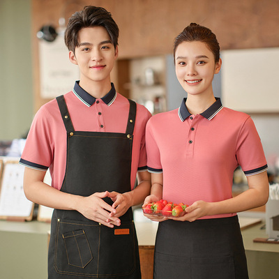 包邮 新款夏季餐饮服务员工作服短袖女食堂超市酒店餐厅烧烤店饭店工装