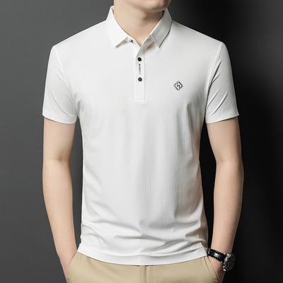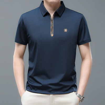 包邮 品雅夏季无痕短袖丅恤衫2025新戈尓中年男装爸爸装休闲翻领体恤潮