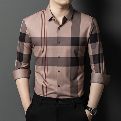 包邮 雅戈尓春秋季翻领长袖衬衫2025新品男装爸爸装简约休闲格子衬衫潮