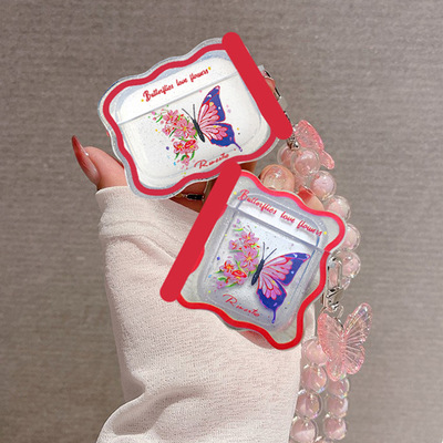 包邮 适用AirPods 4代 AirPods2代苹果蓝牙无线耳机套透闪蝴蝶带挂饰