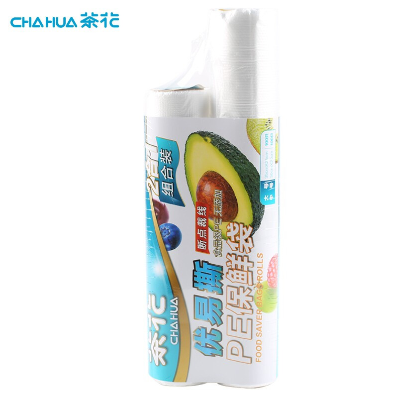 茶花保鲜袋食品袋一次性连卷袋保鲜水果点断式大中小号手撕袋 【200只】大中 各100只