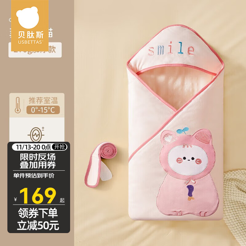 贝肽斯婴儿包被春秋恒温豆豆被宝宝抱被秋冬新生儿产房包单四季通用 小猫+厚棉内胆可拆(推荐0-15°C) 90x90cm