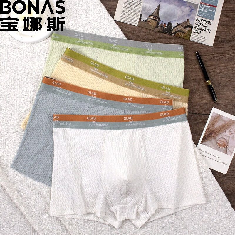 宝娜斯(BONAS)配饰精选四角裤衩男士内裤透气短裤头薄款透气 婴儿棉四条袋装 2XL