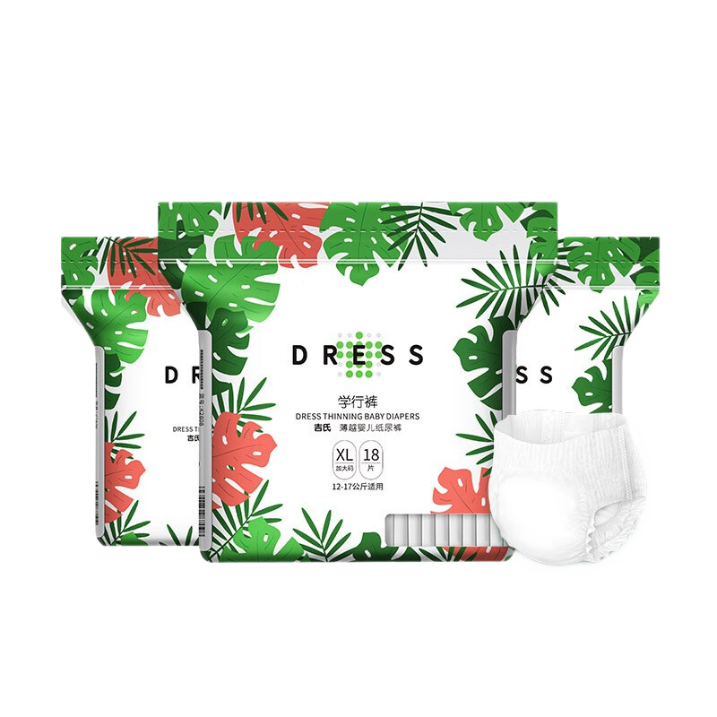 吉氏(DRESS)薄越拉拉裤高颜值大吸量干爽尿不湿婴儿轻薄透气学步裤 箱装L60片
