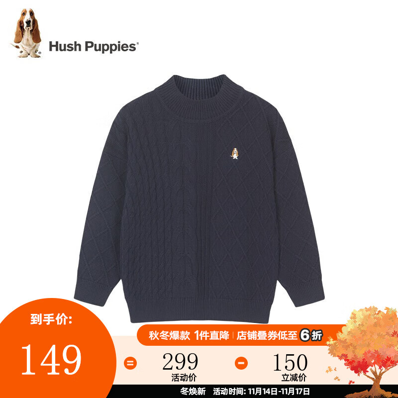 暇步士(Hush Puppies)童装儿童冬装毛衣男女童2023年冬季新款男女大童简约舒适针织衫 藏蓝 150cm