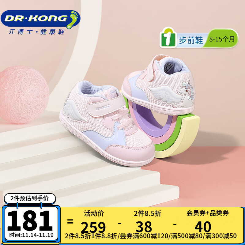 江博士冬季男女儿童休闲透气国货健康步前鞋 卡通可爱幼儿魔术贴学步鞋 粉红/紫 22码 适合脚长约12.7-13.2cm