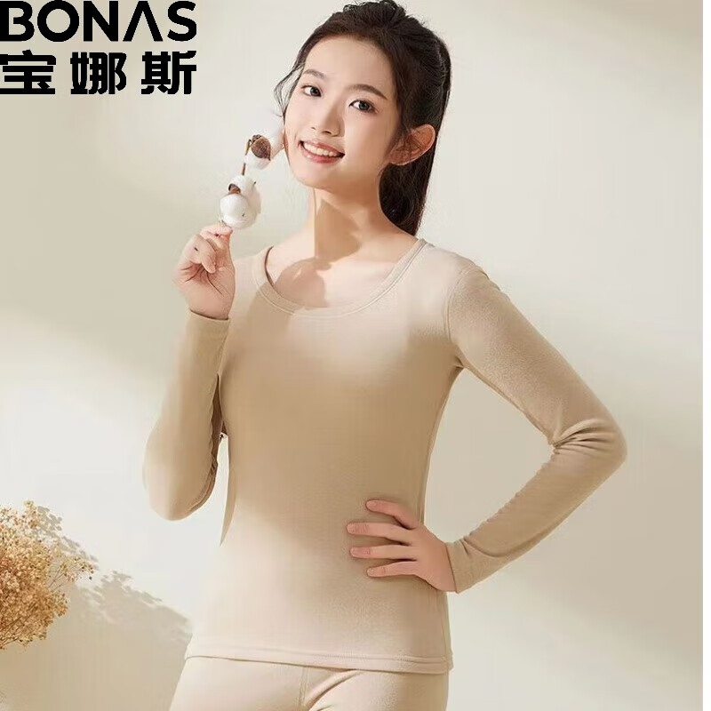 宝娜斯(BONAS)配饰女士磨绒套装加厚紧身圆领女秋衣秋裤 SKM新德绒-肤色 XL(体重110-125)