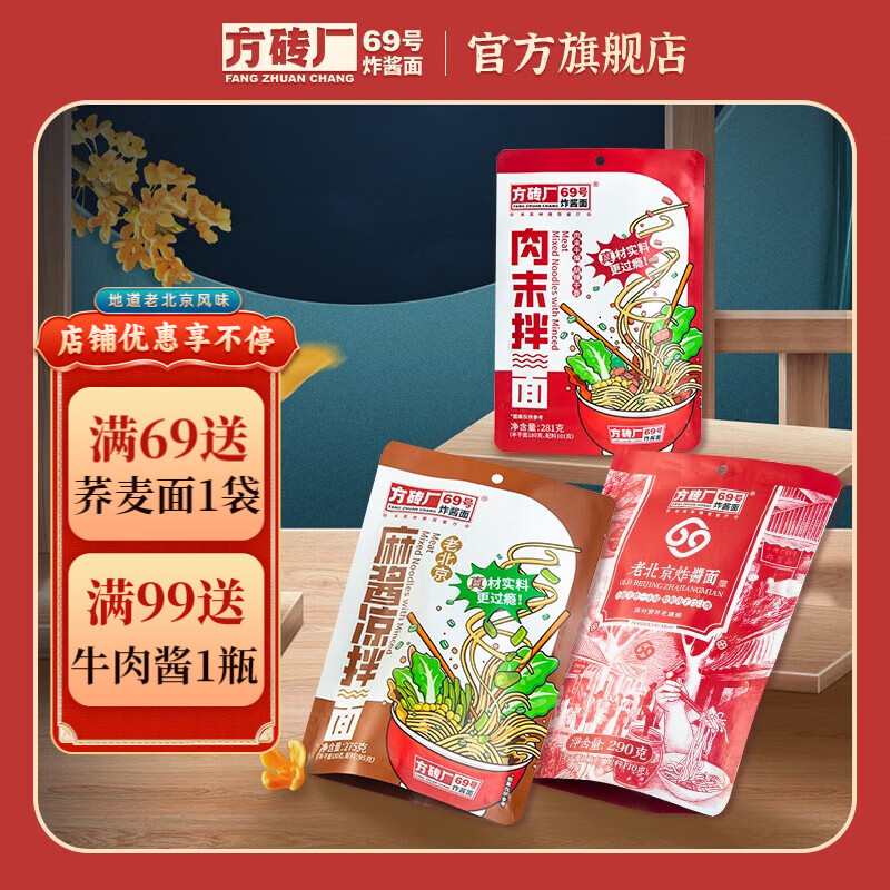 方砖厂69号方砖厂69号老北京炸酱面麻酱肉沫拌面家庭版方便速食面 麻酱 肉沫 老北京炸酱拌面各1袋