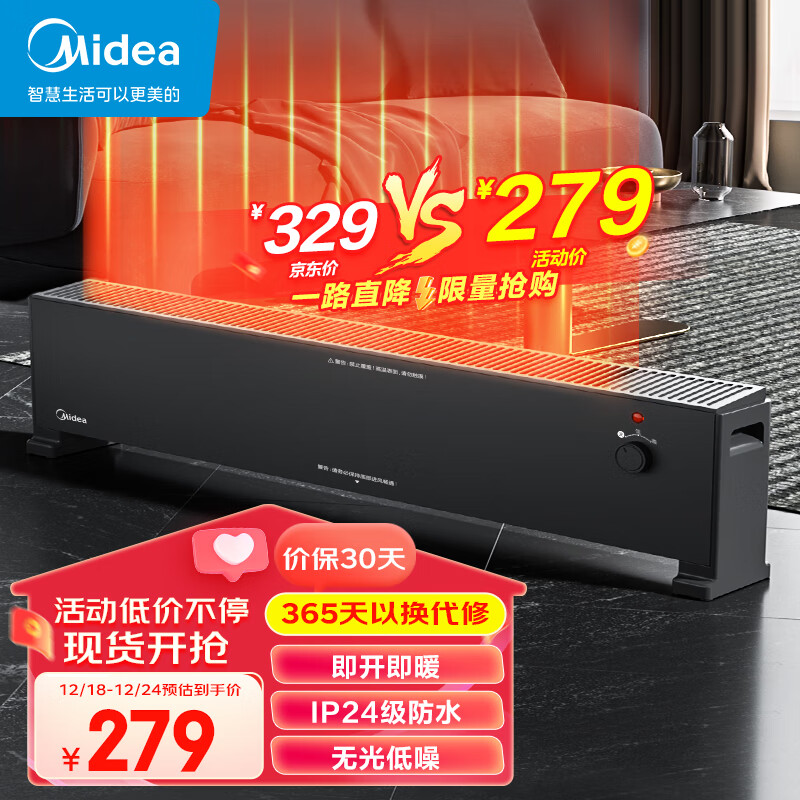 美的(Midea)【速热】石墨烯踢脚线/取暖器家用/电暖器/电暖气/移动地暖/电暖风机/烤火炉大面积除菌 HDU22M