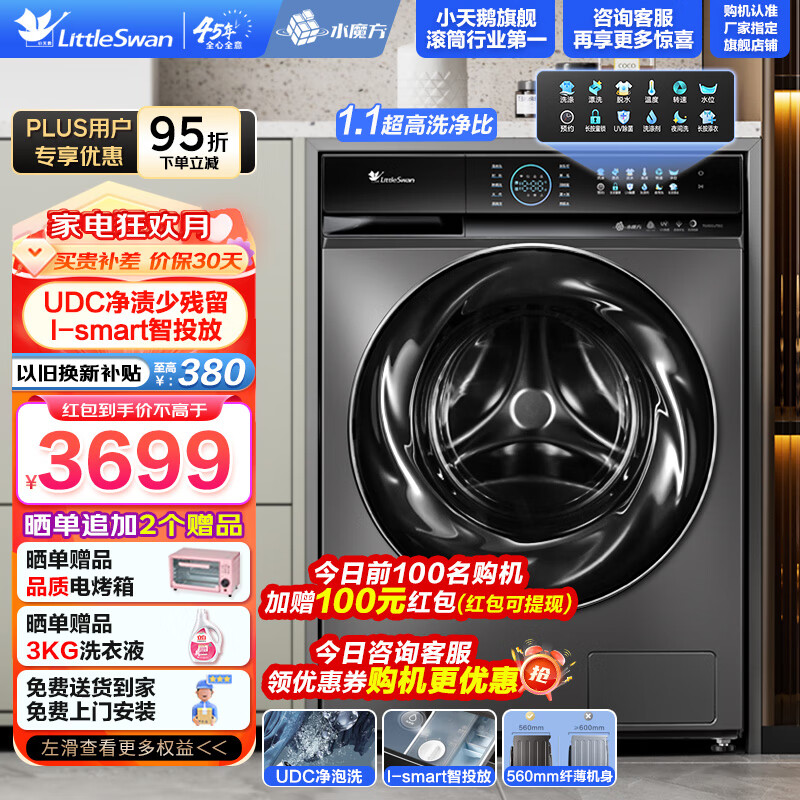 小天鹅(LittleSwan)滚筒洗衣机全自动洗烘一体机 10公斤小钢炮水魔方超微净泡智能投放变频家电以旧换新 809相似款 【新升级款丨彩屏滚筒】TG100UTEC