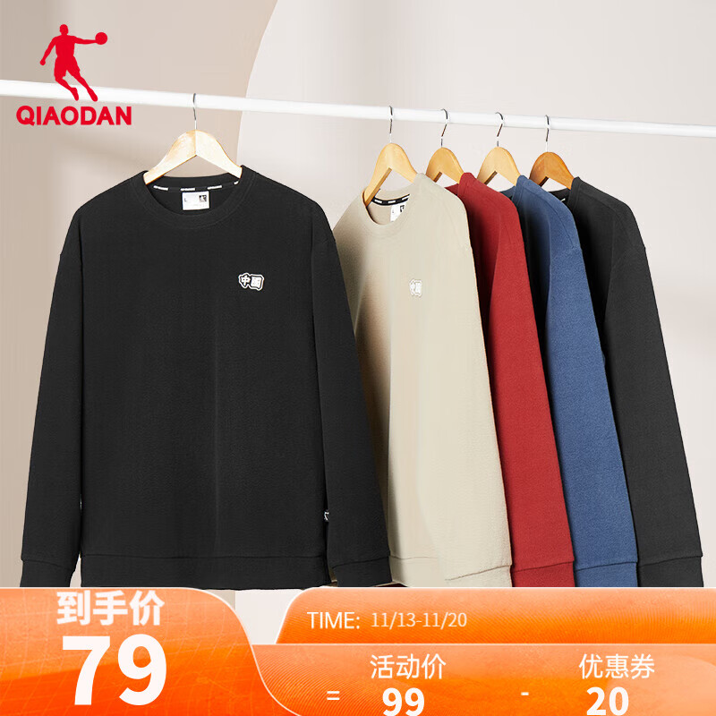 乔丹QIAODAN加绒卫衣男外套2023冬季保暖中国潮套头衫摇粒绒针织上衣 黑色 180/XL