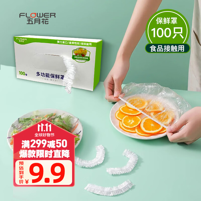 五月花一次性保鲜袋食品级保鲜膜套弹性束口保鲜罩食品袋 100只装