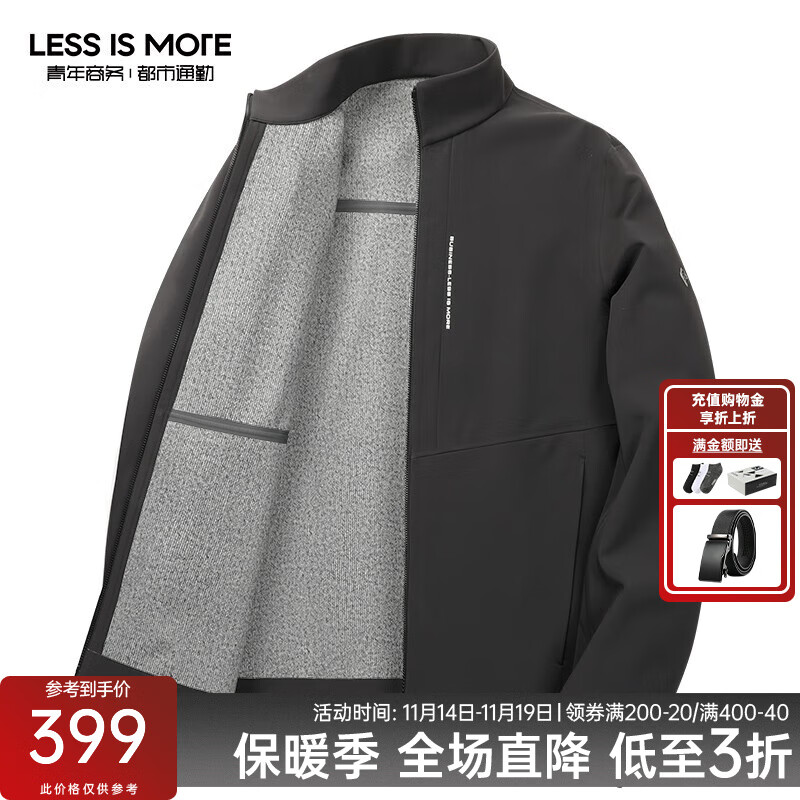 利郎轻时尚男装【远红外蓄暖】23秋冬新款夹克男立领保暖防风通勤外套 黑色 175