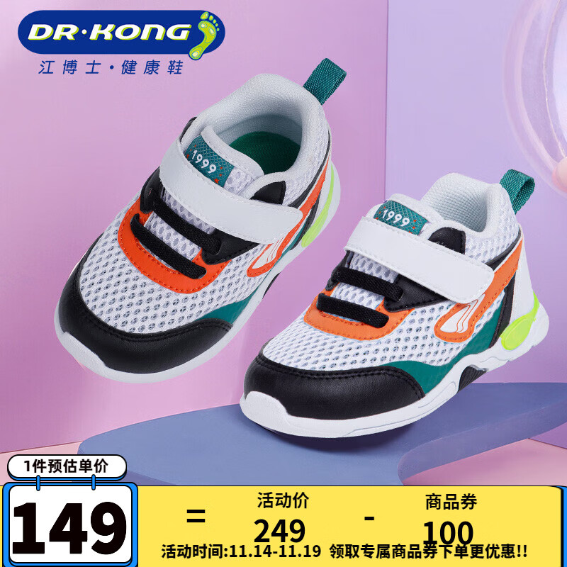 江博士(DR·KONG)春季步前鞋 男童女童 国货休闲学步鞋 透气 儿童运动鞋 软底童鞋 白/黑/橙 22码 适合脚长约12.7-13.2cm