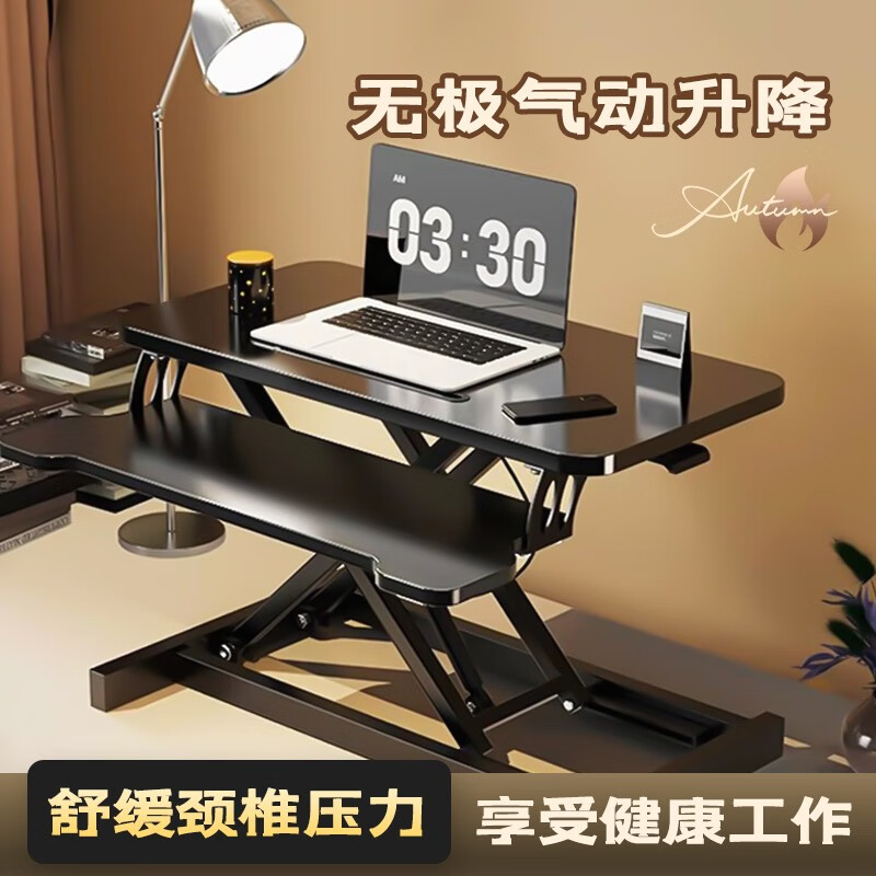 小梦升降桌升降电脑桌站立式工作台办公书桌显示器升降支架台式工作桌 曜石黑60CM+键盘位 【无极升降】超强承重