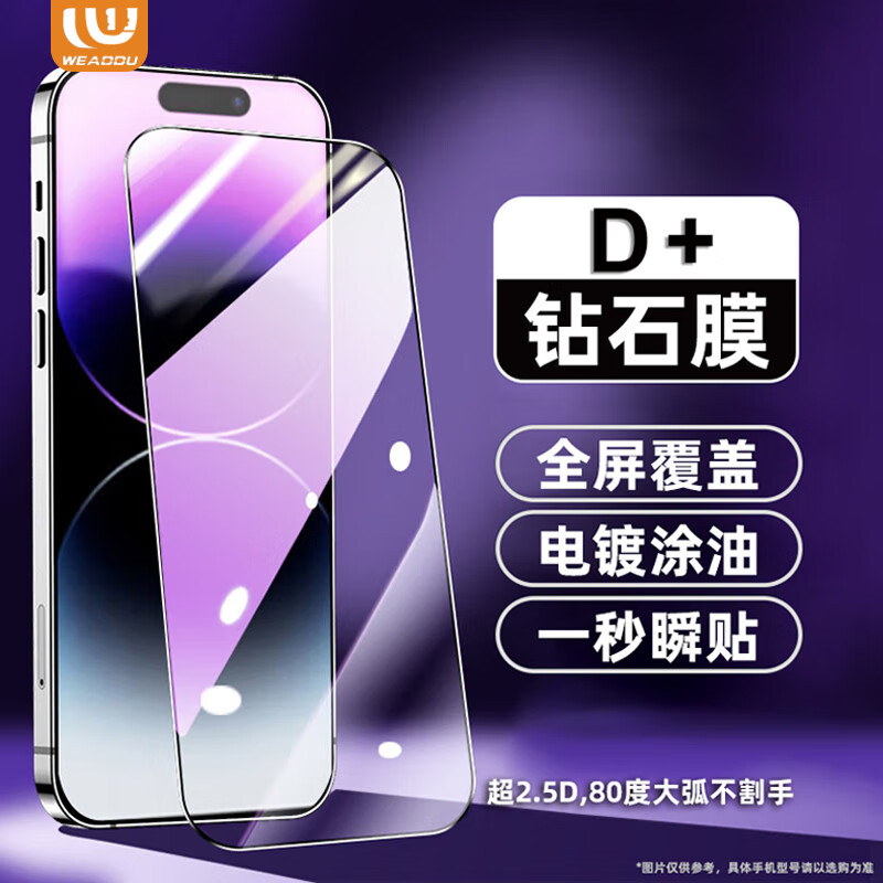 WEADDU苹果15/14/13/12/11 Pro max钢化膜全覆盖抗指纹钻石黑边手机贴膜 D+【标准版】全覆盖【2片装】* 店长推荐 苹果15钢化膜