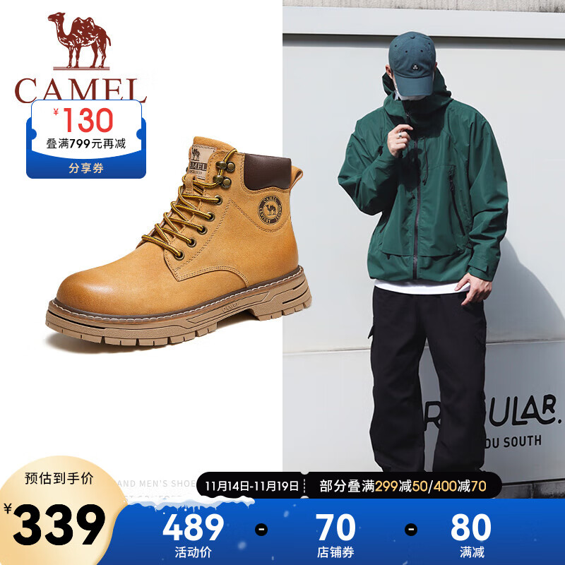 骆驼(CAMEL)丁真同款经典马丁靴复古厚底增高情侣款户外工装大黄靴 G13W136121 驼色/咖啡 42