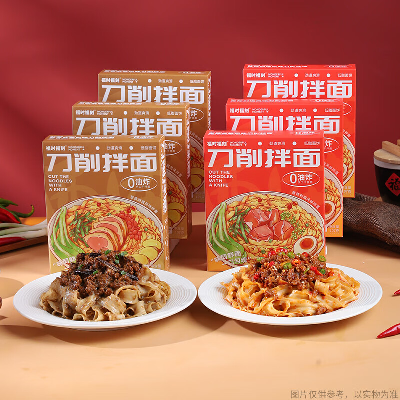 福时福刻甄选盒装葱香麻酱刀削面0油炸速食刀削拌面方便面儿童早餐代餐 (配好酱)刀削面6盒装:葱香麻酱口味