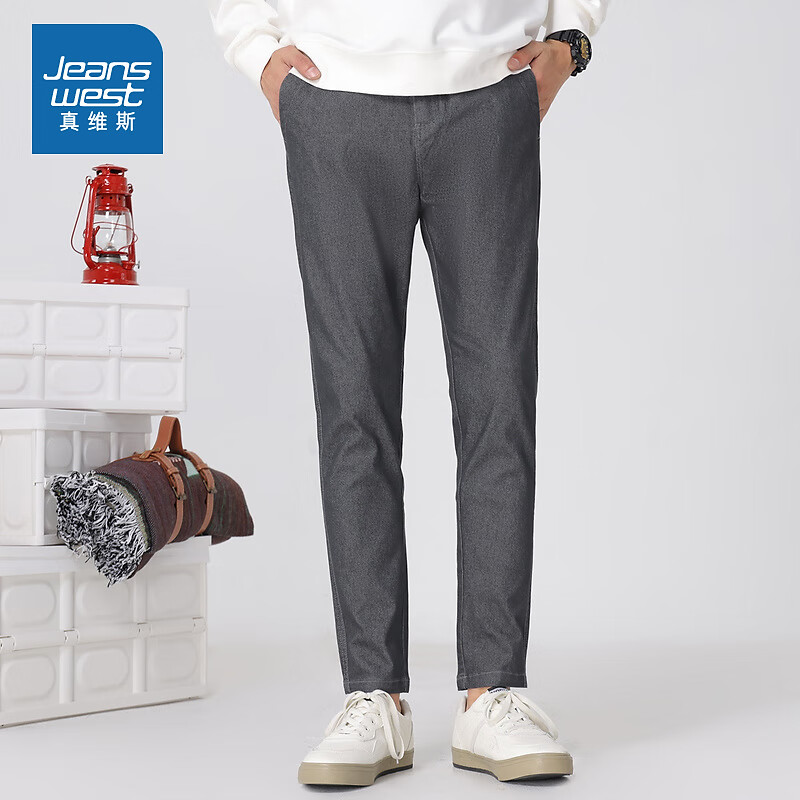 真维斯男装2023秋季新款男士时尚舒适抽绳款休闲长裤LY 深灰色2040 33