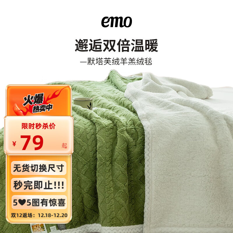 一默毛毯塔芙绒午睡毯羊羔绒盖毯办公室居家沙发双面加厚保暖毯子冬季 嫩芽绿 100*120cm