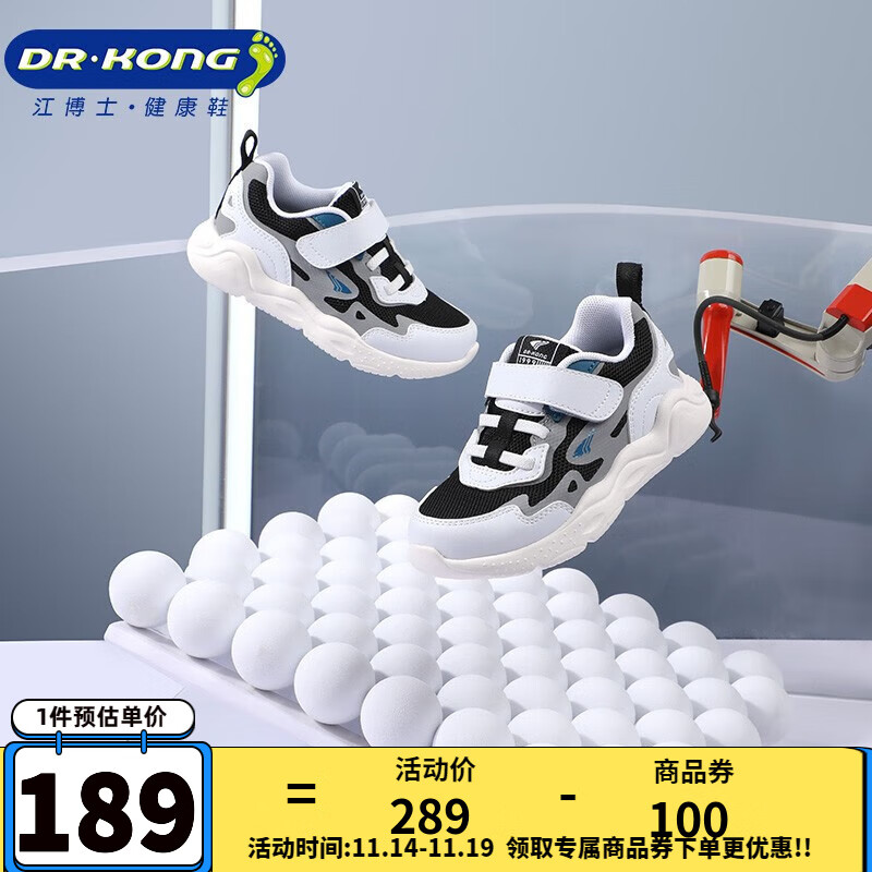 江博士(DR·KONG)童鞋春季男女童休闲学步鞋 1-3岁网布透气舒适国货儿童运动鞋 黑/白 23码 适合脚长约13.4-14.1cm