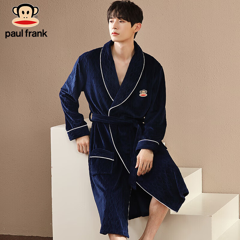 PAUL FRANK大嘴猴情侣睡衣男冬珊瑚绒睡袍加厚长款海岛绒浴袍男士秋冬家居服