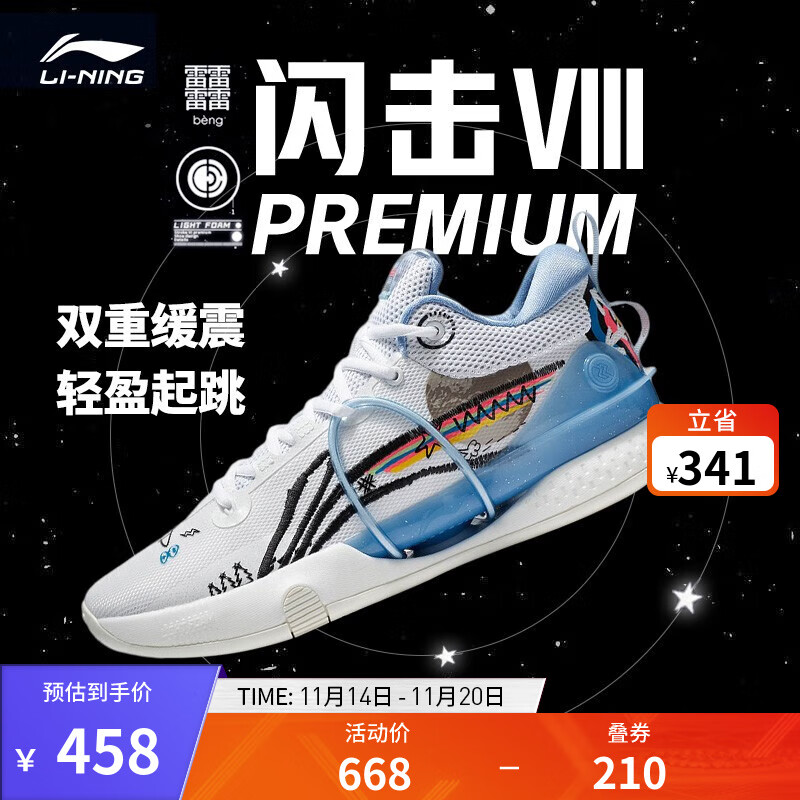 李宁闪击8Premium男鞋篮球鞋beng科技轻便支撑稳定减震专业实战运动鞋 标准白(119款)-4 42