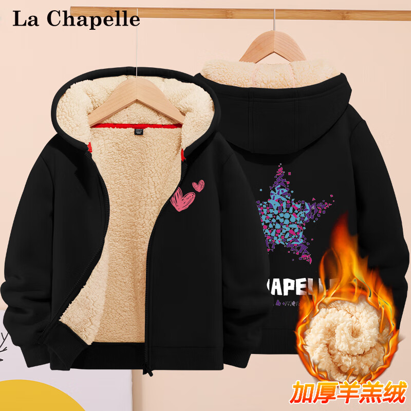 LA CHAPELLE KIDS女童外套冬季儿童羊羔绒加绒加厚冬装女孩冬款衣服保暖连帽开衫 【羊羔绒】黑/L海星+L小红心k 130