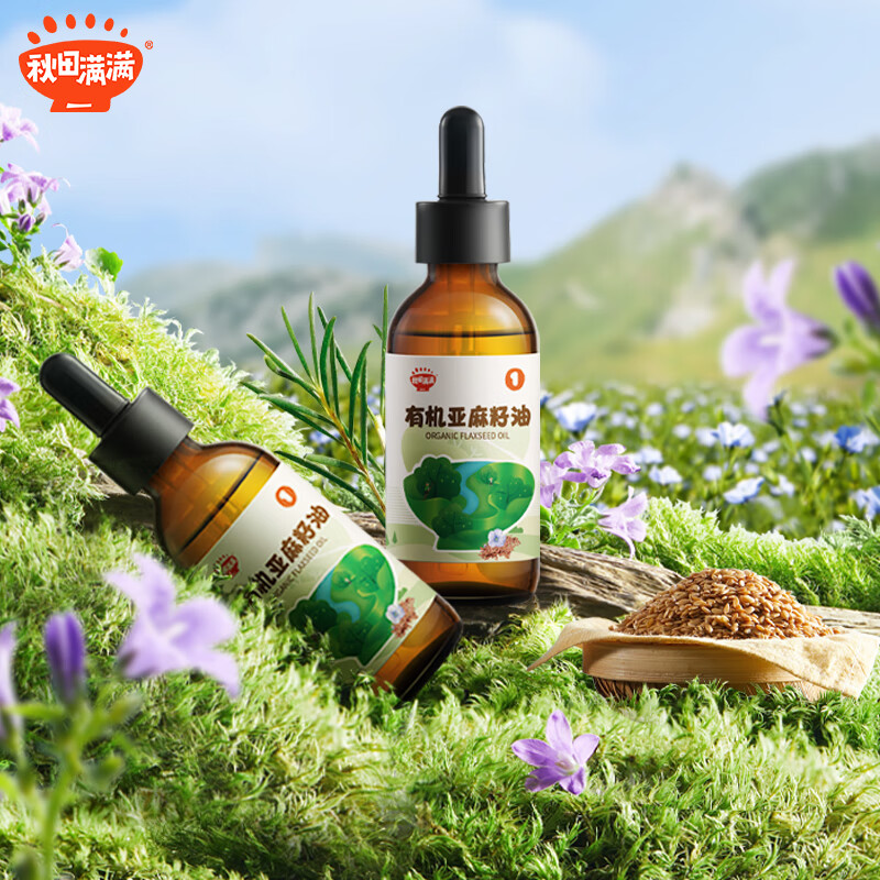 秋田满满 有机亚麻籽油124ml 滴管设计 儿童食用油_享宝宝辅食食谱