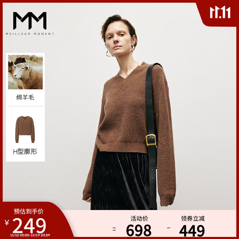 麦檬MM麦檬秋冬经典复古绵羊毛羊毛V领针织衫上衣女5CA231231 红棕 155/80CM/S