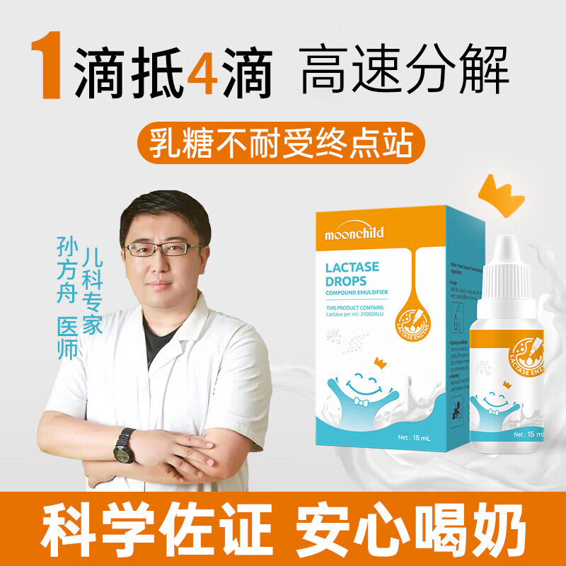 月宝乳糖酶滴剂婴儿宝宝0-3-6-12个月乳糖不耐奶伴侣
