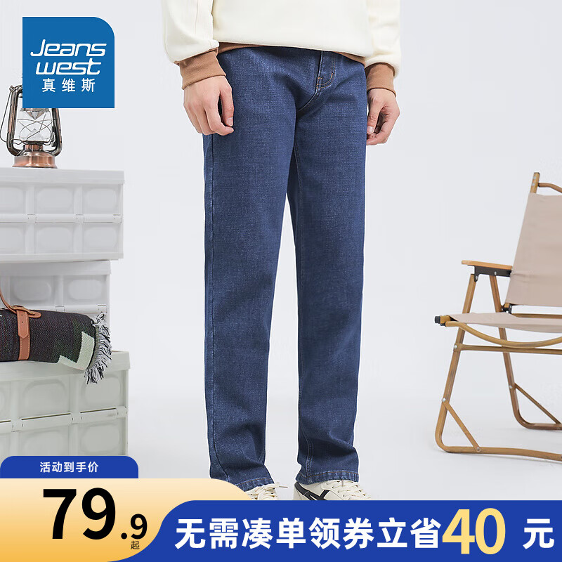 真维斯男装2023冬季新款学生保暖加绒弹力直筒休闲牛仔裤KRP 靛蓝色2572(加绒) 32