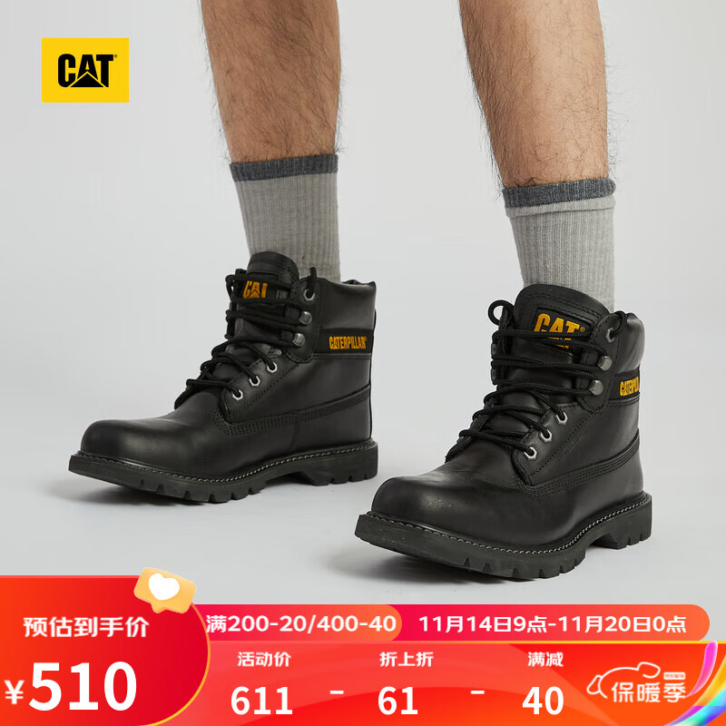 CAT卡特工装靴马丁靴男靴科罗拉多牛皮防滑防泼水工装靴休闲靴鞋子男 黑色 41