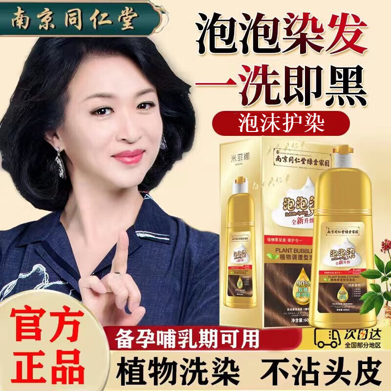 南京同仁堂染发剂植物配方孕妇可用纯无刺激天然牌不沾头皮自己在家染发 自然黑色 600ml