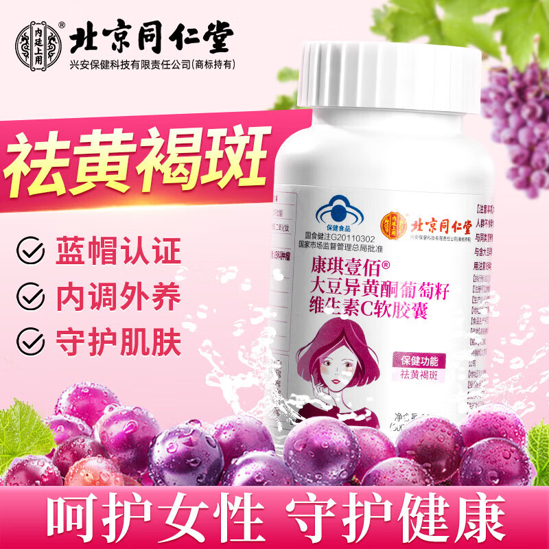 北京同仁堂大豆异黄酮葡萄籽维生素C软胶囊祛黄褐斑雌激素补充女性保健品60粒/瓶