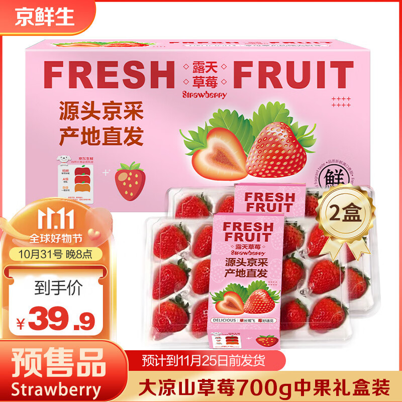 京鲜生 露天奶油草莓700g 中果 单果约15g 新鲜水果源头直发包邮