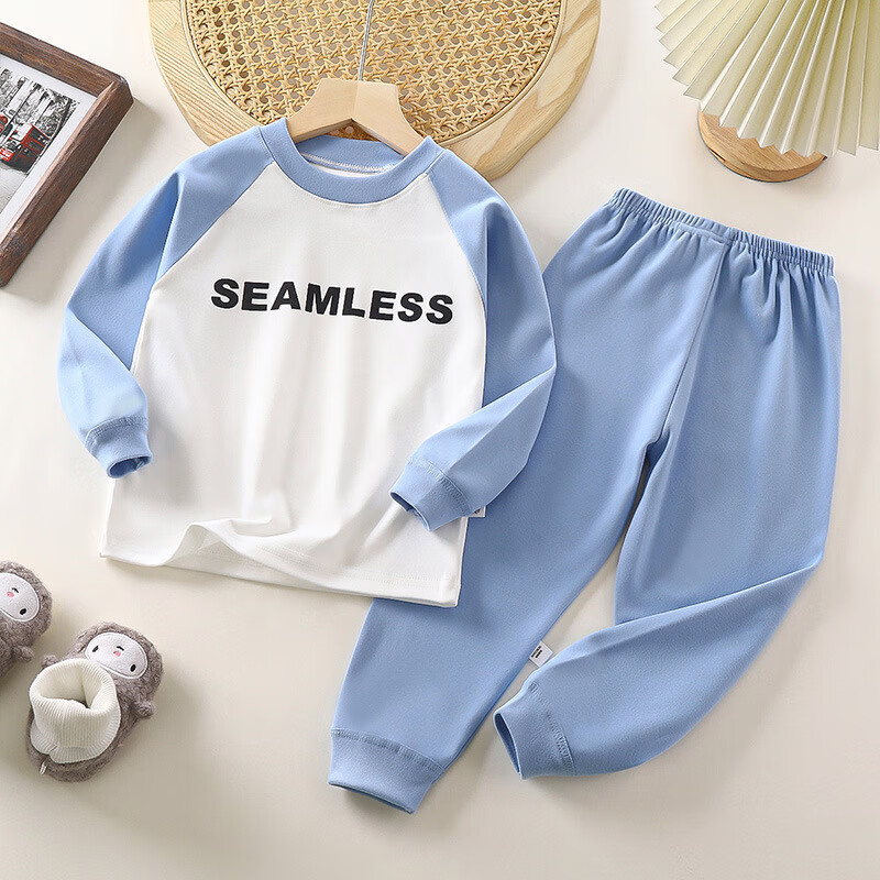 儿童家居服德绒保暖内衣套装男女童宝宝秋冬秋衣秋裤中大童打底衫 FDS01-蓝色 140cm偏小一码