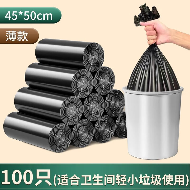垃圾袋家用平口加厚办公室大号手提式厨房一次性塑料袋清洁商用 5卷100只45x50平口垃圾袋(适合 加厚
