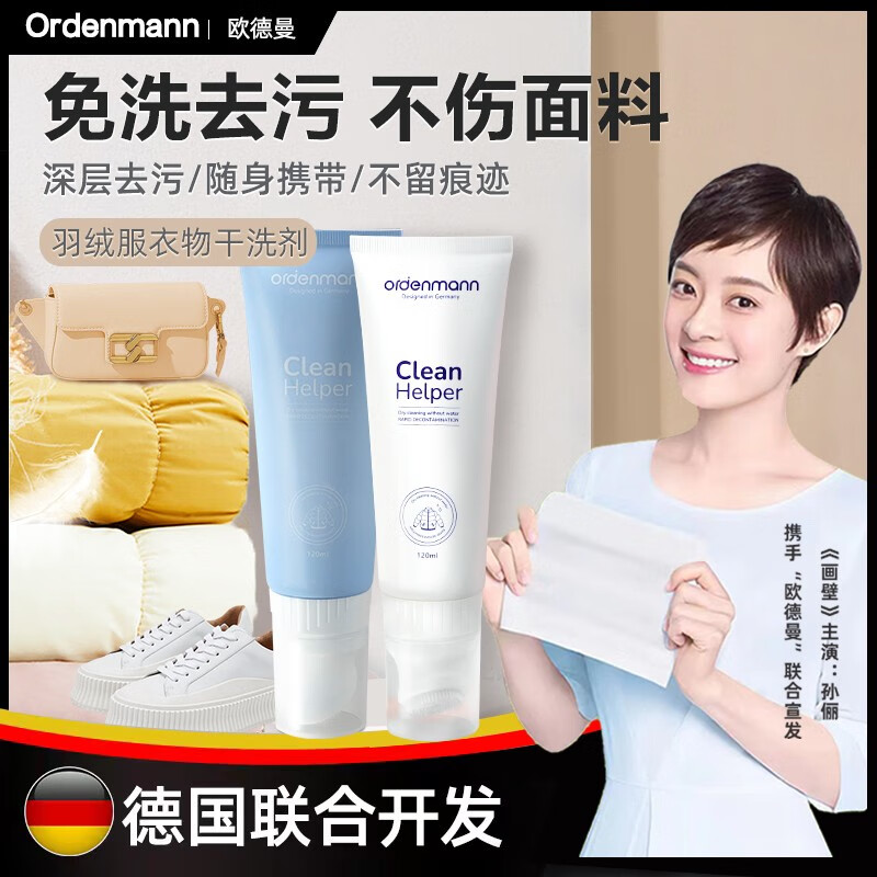 欧德曼羽绒服干洗剂家用免水洗神器衣物快速去污渍油污清洁剂喷雾 小蓝瓶*1【针对普通污渍】 120ml