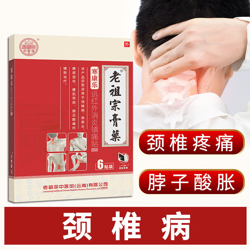 老祖宗膏药颈椎贴颈椎病膏专用贴脑供药血不足头晕颈部手麻肩颈酸痛黑膏贴脖子疼止痛富贵包特傚远红外磁疗贴 寒康乐贴(圆磁黑膏)6贴/盒