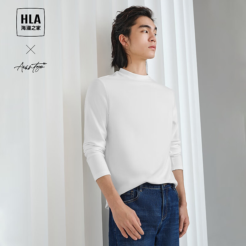 HLA海澜之家长袖T恤春秋23新款轻商务时尚系列打底衫男HNTAW3Y021A 漂白40 190/104A/XXXL