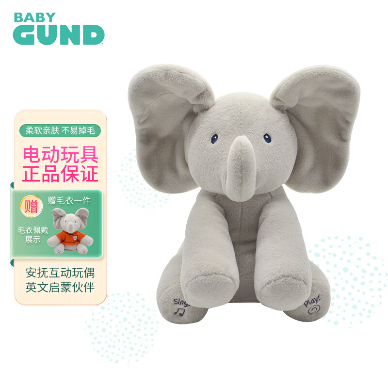 GUND菲比小象毛绒玩具躲猫猫安抚玩偶生日礼物害羞公仔抬头训练神器 升级版菲比小象【可调音量】