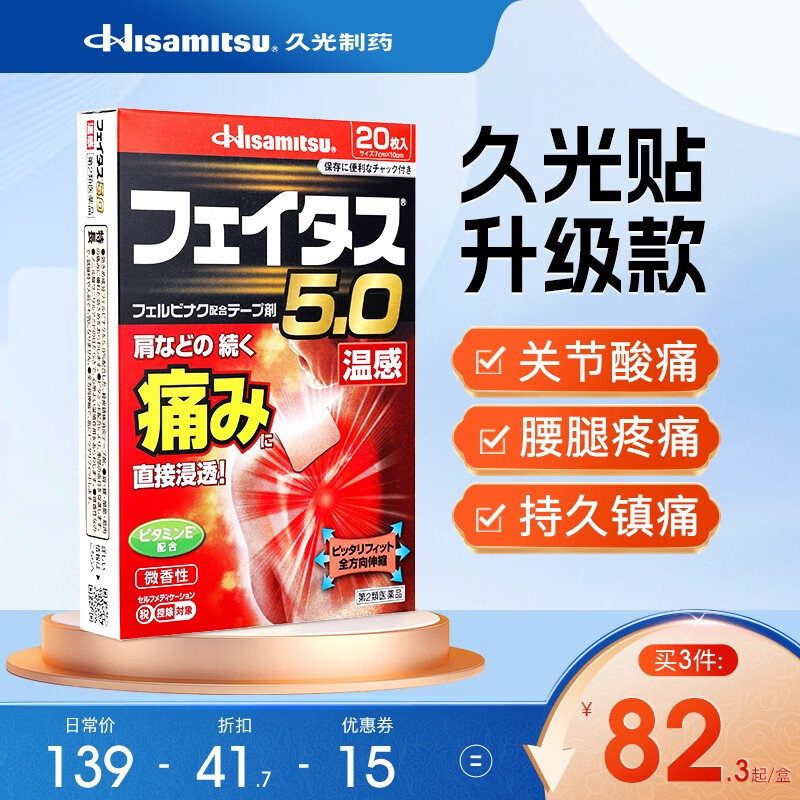 久光制药Hisamitsu 斐特斯5.0 温感贴20枚 日本久光膏药贴 跌打扭伤腰疼关节痛贴膏