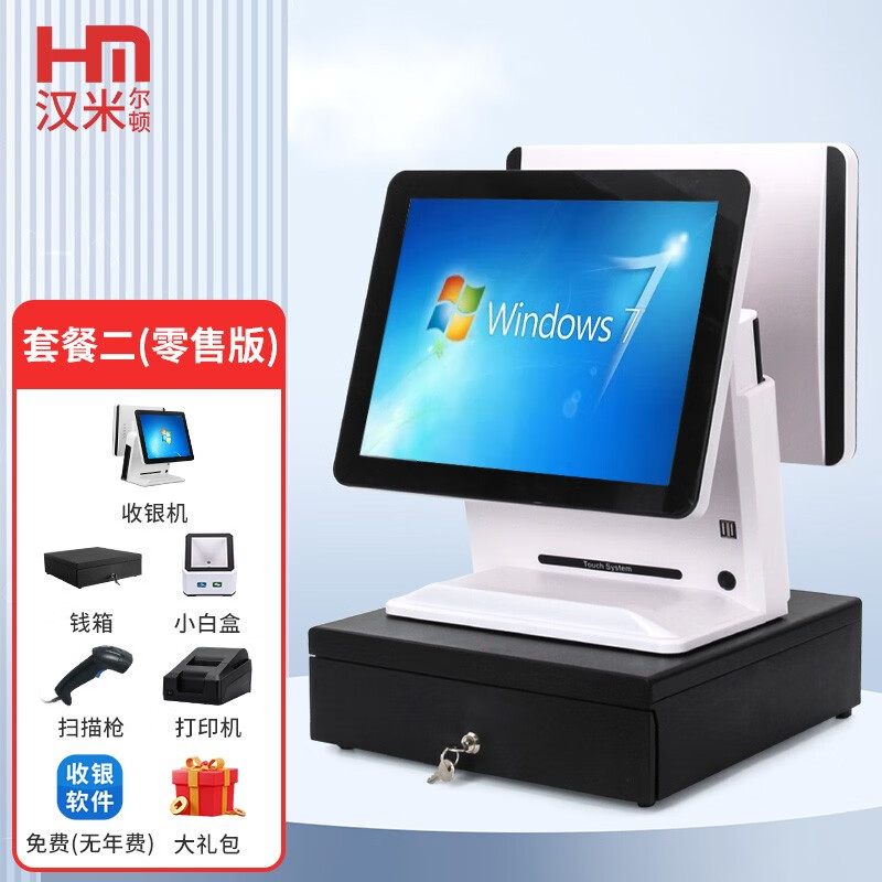 汉米尔顿 超市收银机 便利店母婴服装店收款机 餐饮外卖点餐机 扫码收银系统 收银结账打票手机查报表 套餐二(零售版) 双屏(4G+64G)