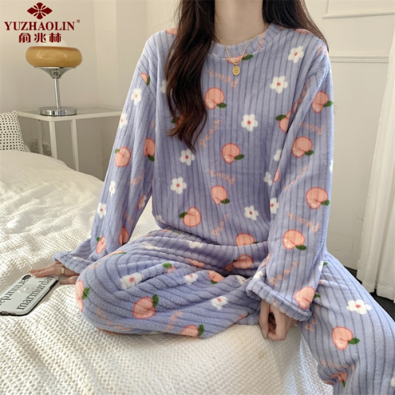 俞兆林DB好物2023年冬天家居服珊瑚绒睡衣女秋冬季加绒加厚月牙暖暖套装 zd-5617#蓝色水蜜桃 XL(120-140斤)