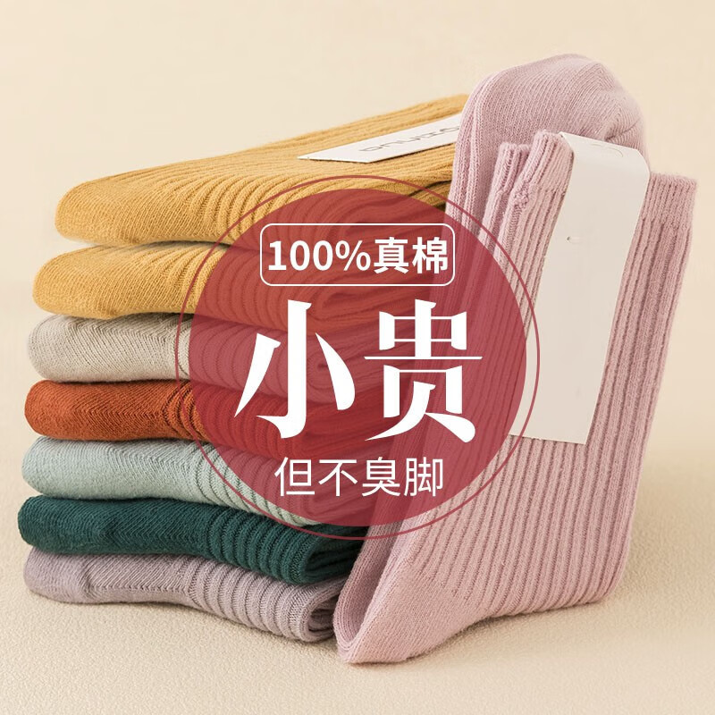 十年三秋袜子女秋冬年新款中筒袜纯棉防臭袜日系纯色双针无骨加厚长袜 混色系列随机发(共5双) 女款均码(女款无灰色发黑白)